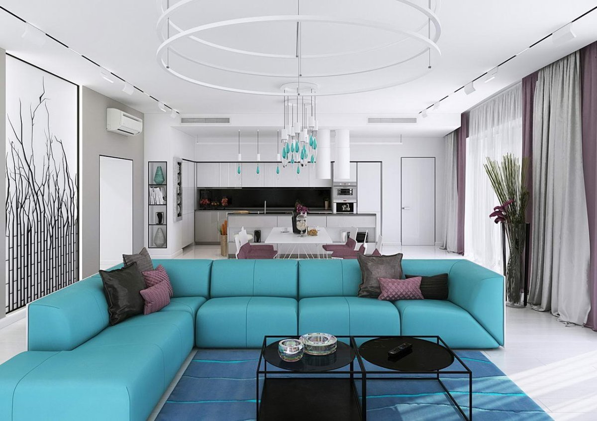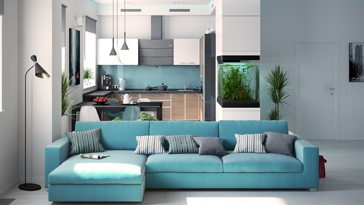 27. Бирюзовая кухня гостиная
