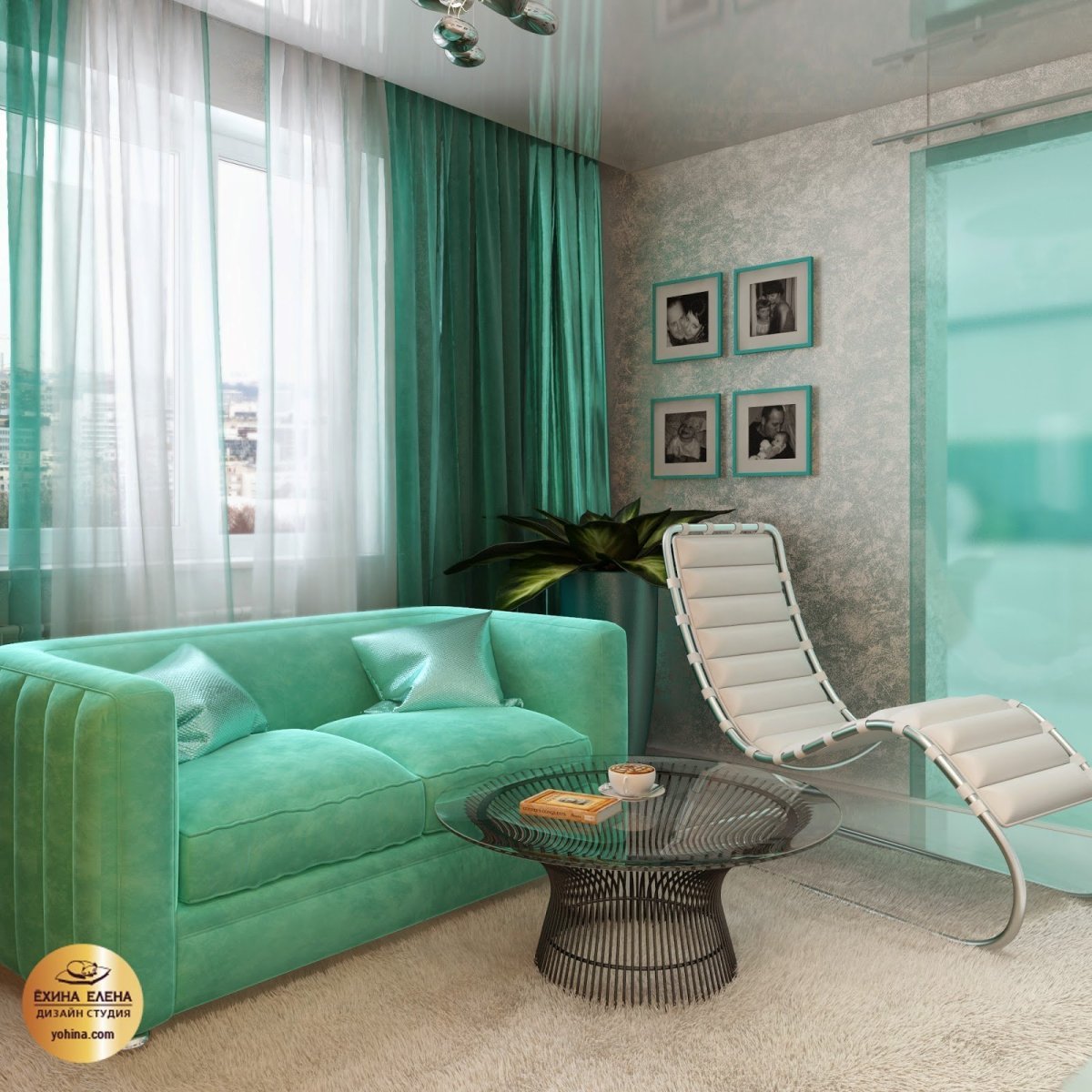 12. Гостиная в цвете морской волны