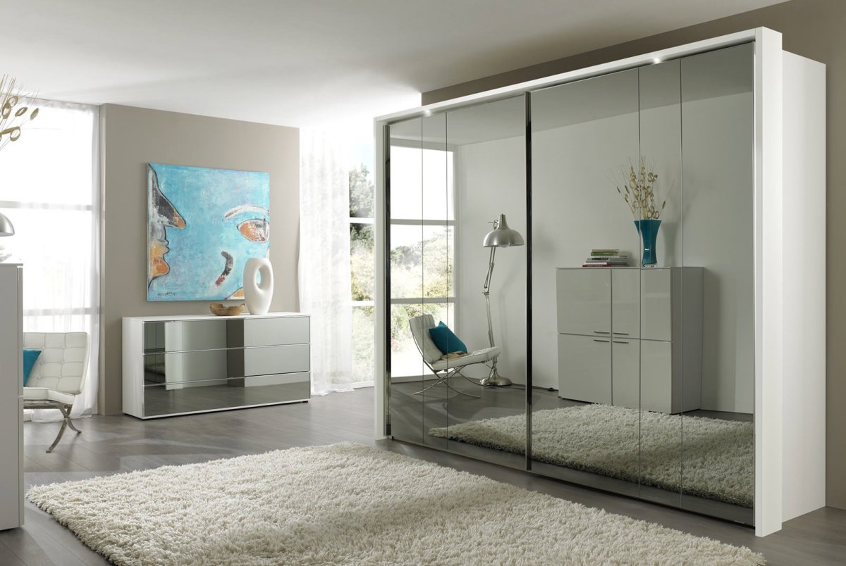 7. Белый шкаф с графитовым зеркалом