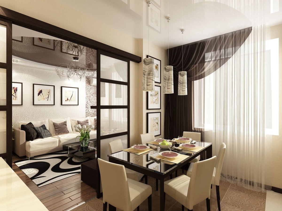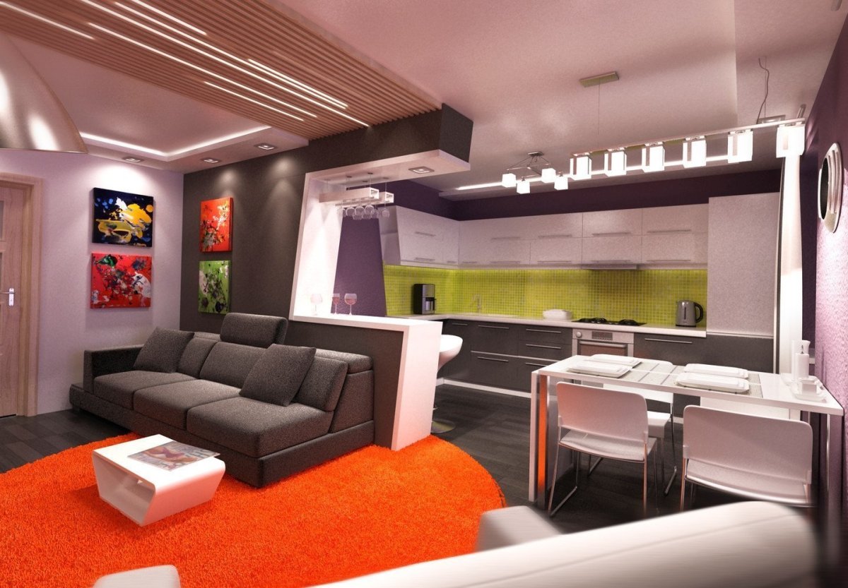 8. Интерьер гостиной совмещенной с кухней 20м2