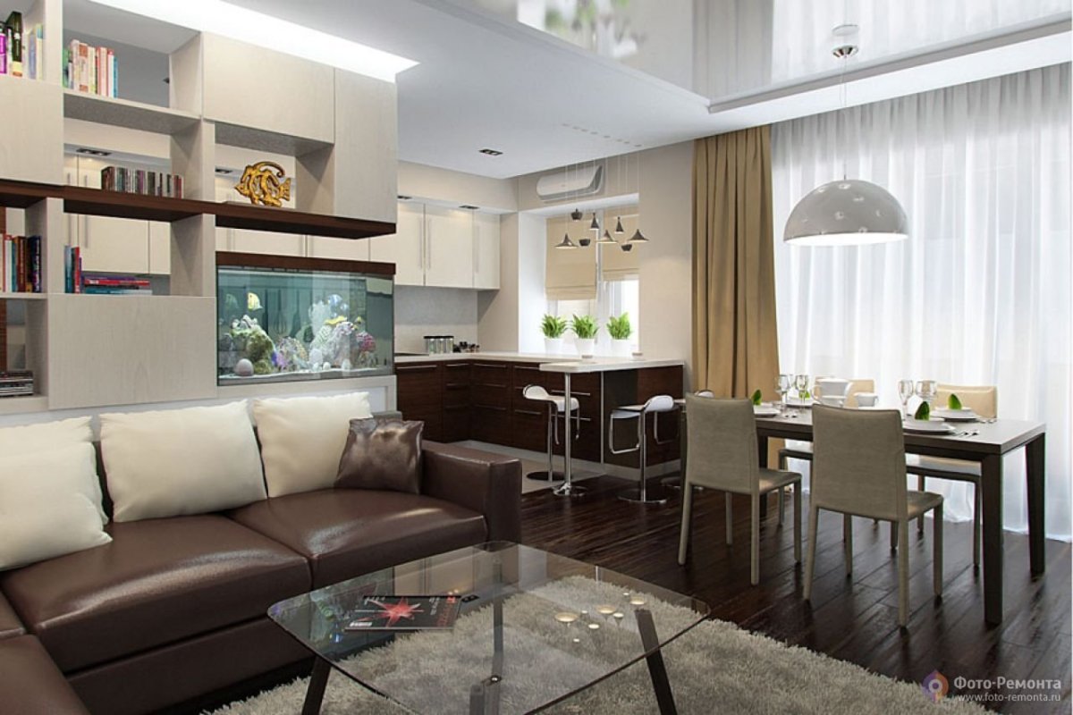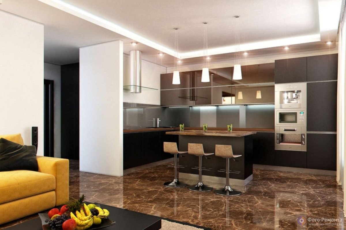 24. Дизайн кухни совмещенной с гостиной в квартире