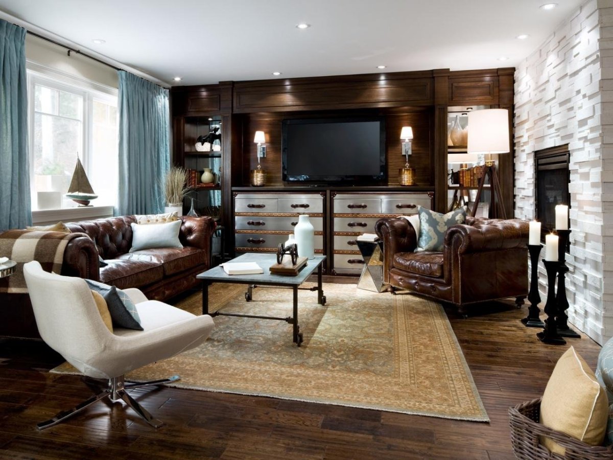 16. Коричневый диван в гостиной