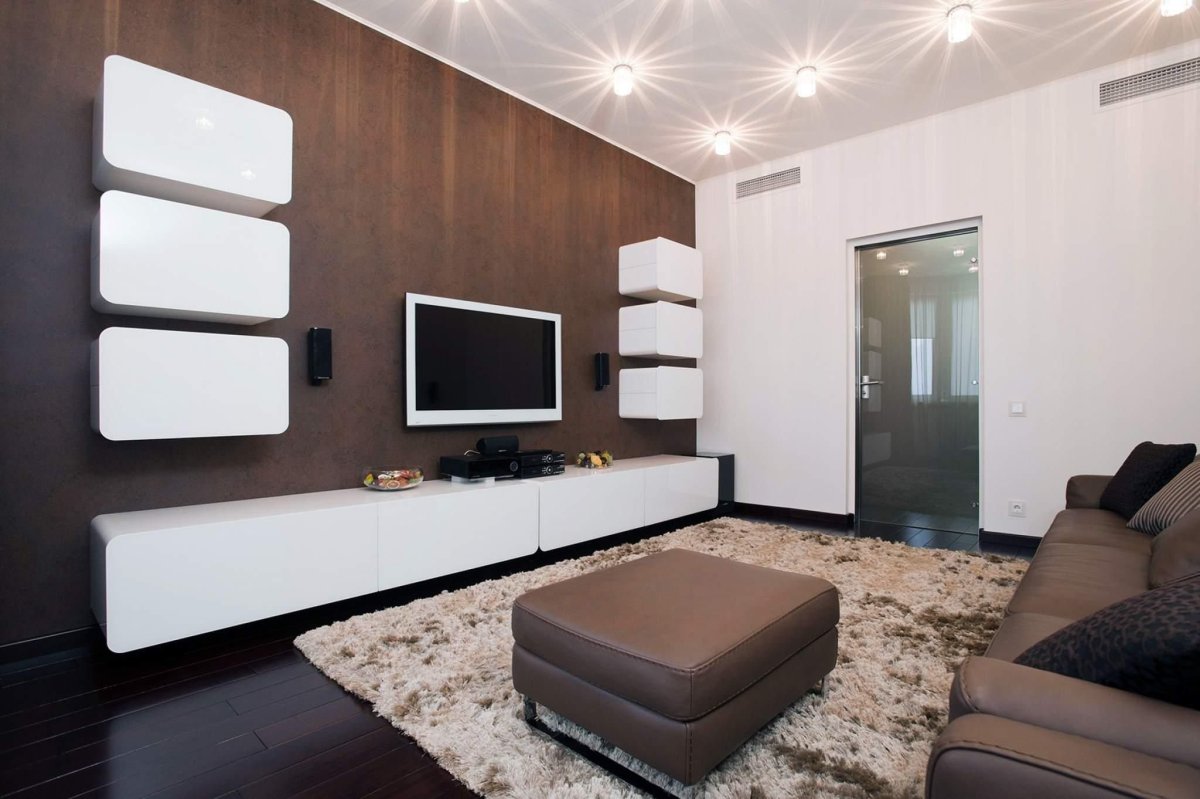 44. Гостиная в коричнево белом цвете