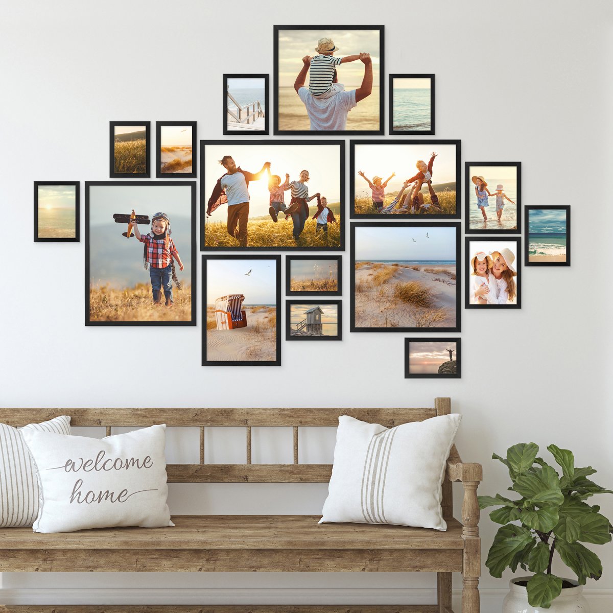 Фото: Большой коллаж на стену гостиной