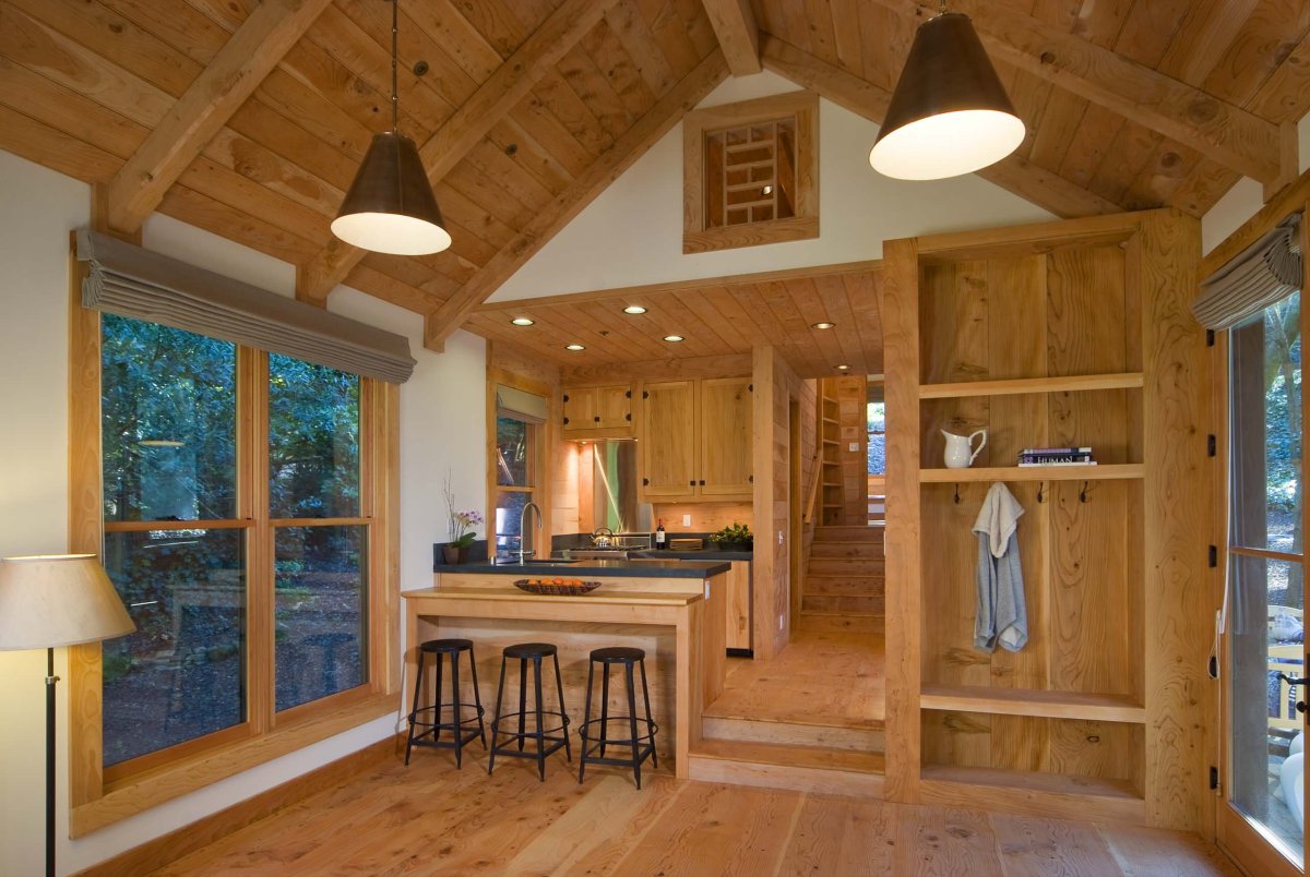 24. Дом из оцилиндрованного бревна интерьер кухня гостиная