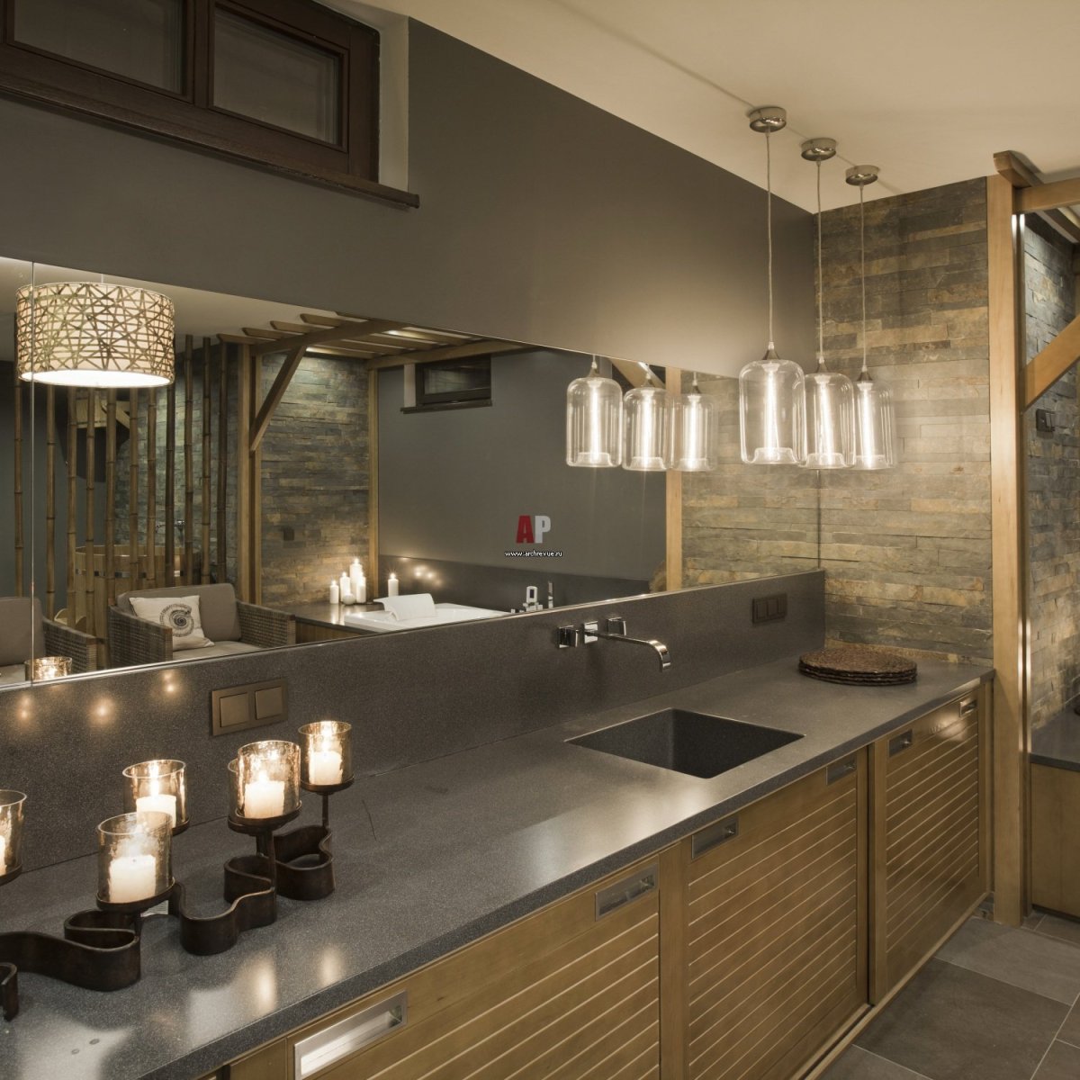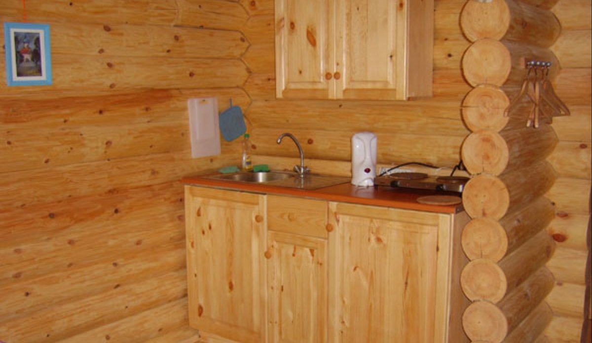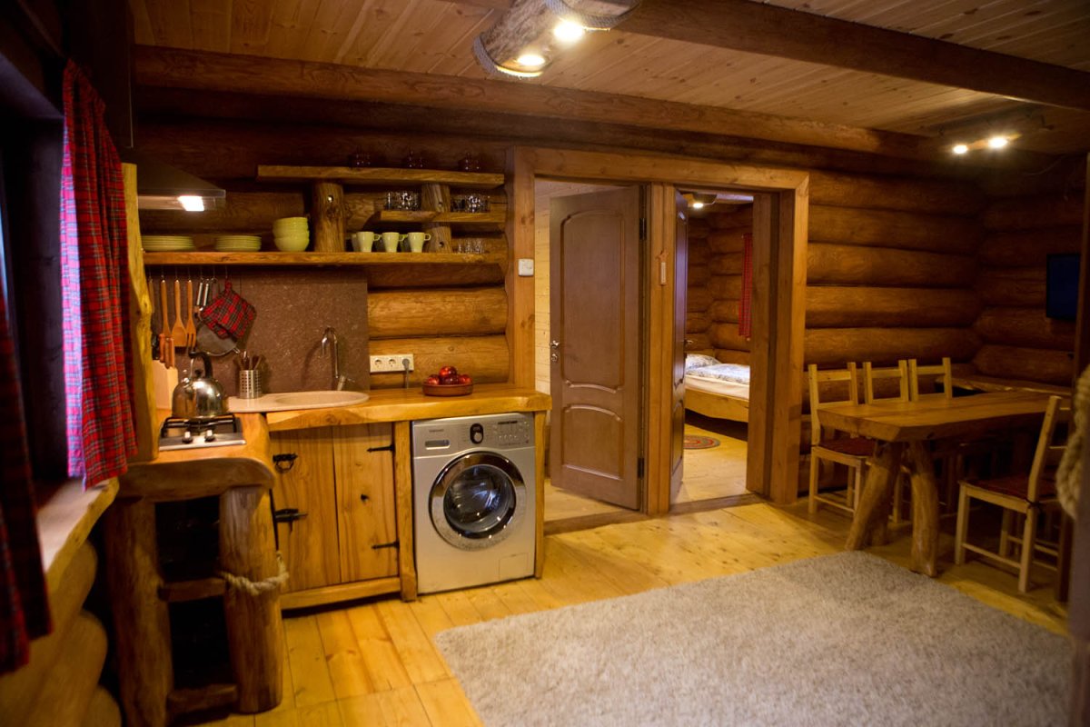 51. Интерьер кухни в бревенчатом доме в русском стиле