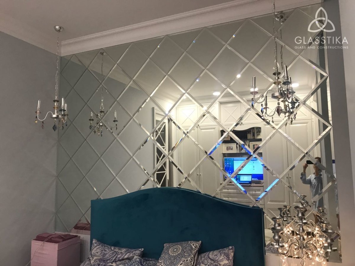 62. Зеркальная плитка в спальне