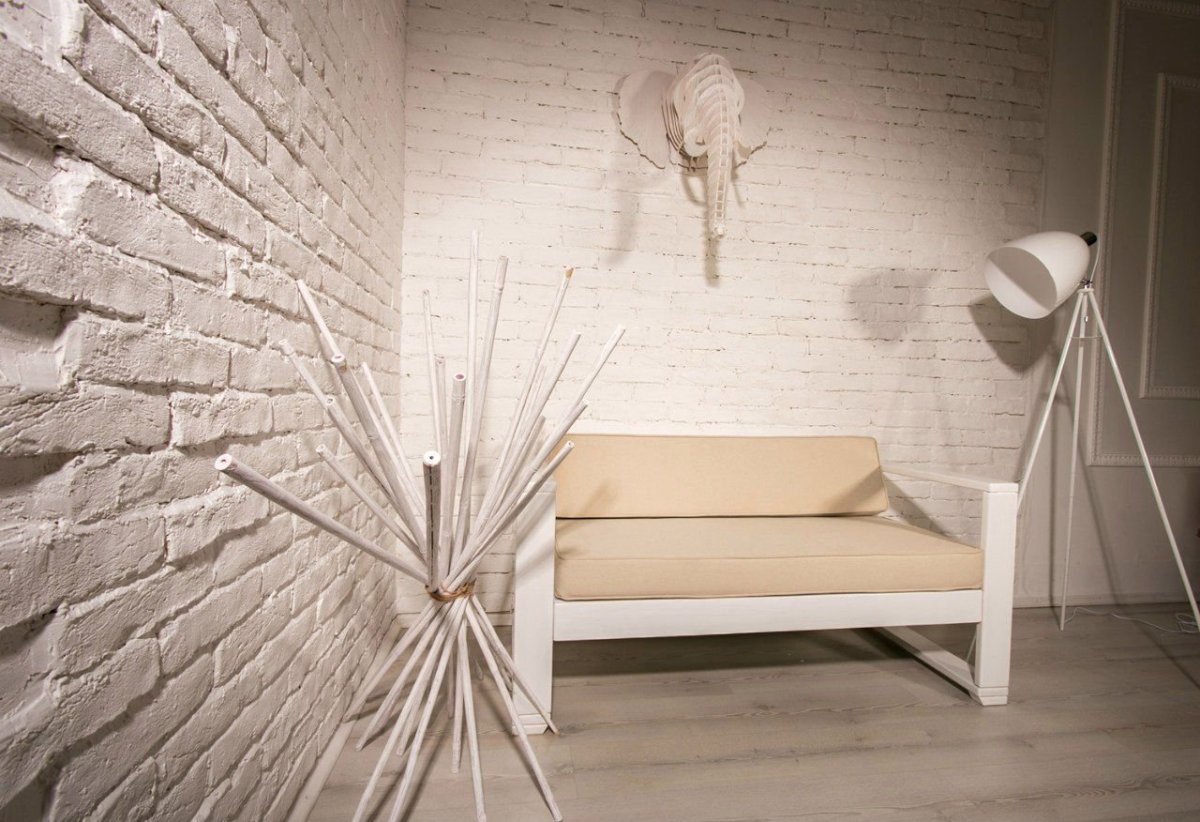 52. Декор стены белым кирпичом