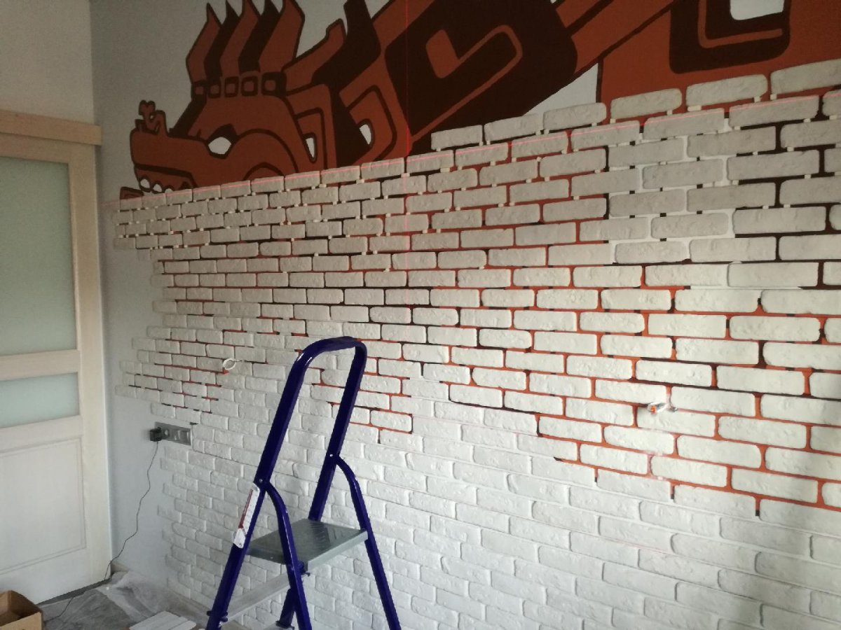 2. Декор стены кирпичиками частично