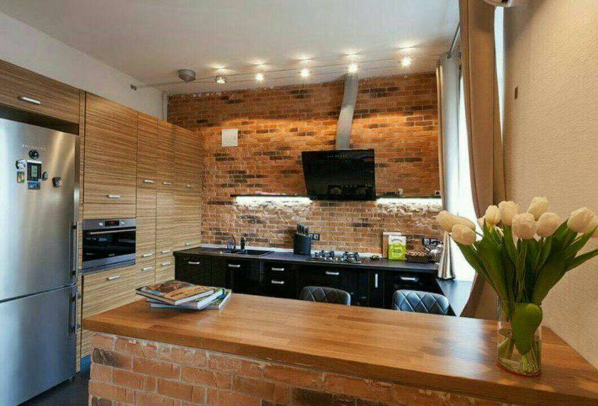 36. Кирпич в интерьере кухни