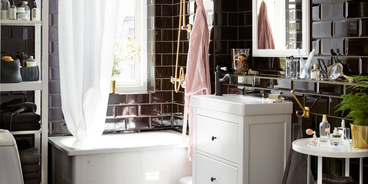 61. Интерьер ванной комнаты с ванной икеа