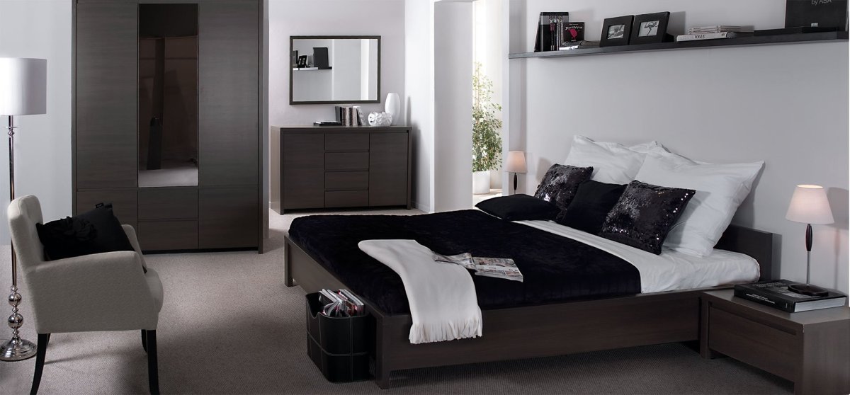 28. Двуспальная кровать цвета венге в интерьере