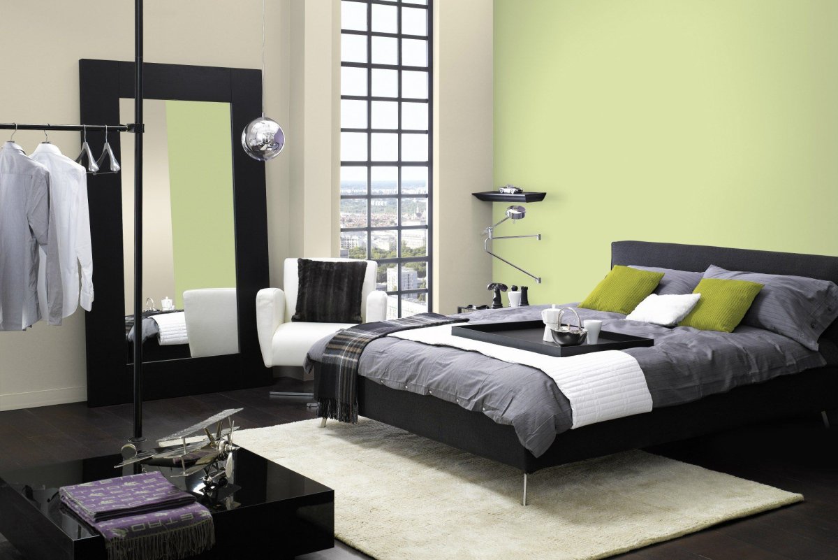 36. Светлая спальня с темной мебелью современная