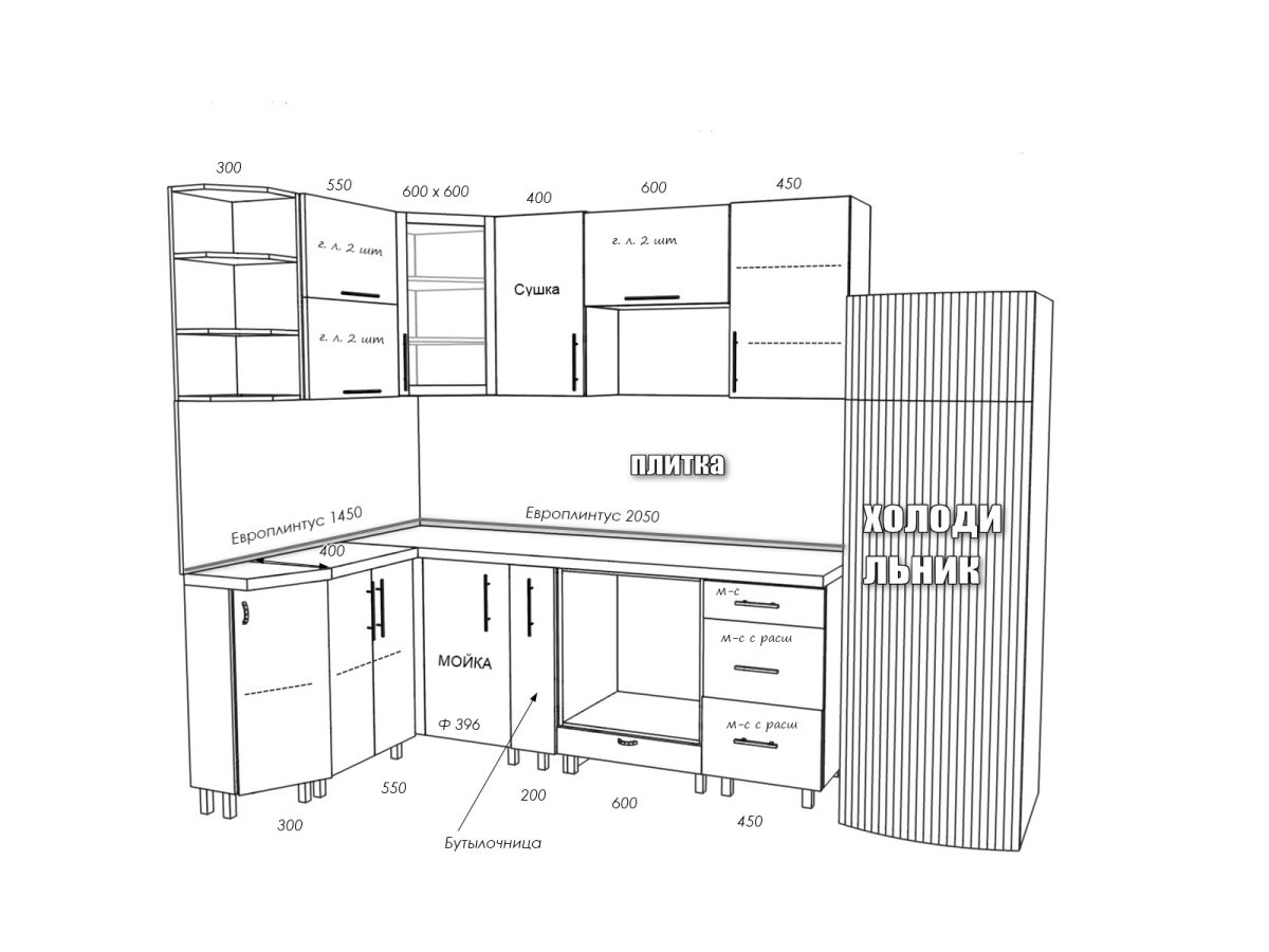 Фото: Чертежи кухонных гарнитуров с размерами для распила