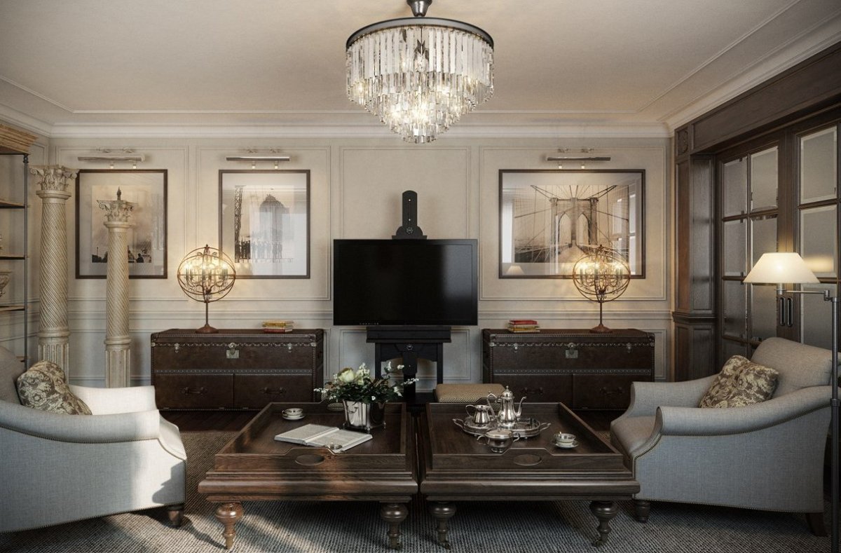 52. Линкруста в интерьере гостиной в стиле Неоклассика