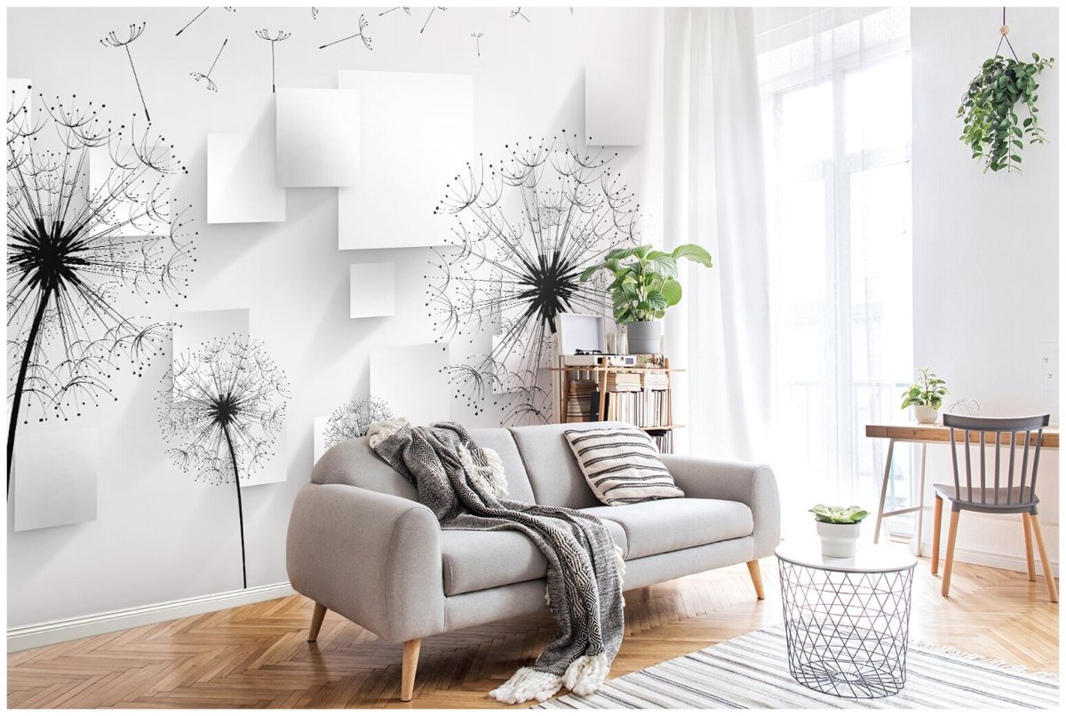 3. Фотообои с одуванчиками в интерьере