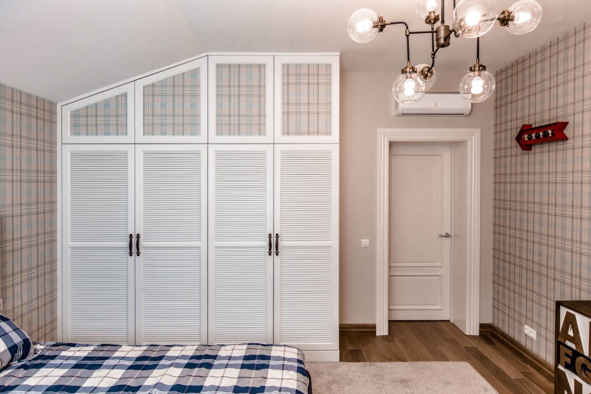 27. Шкаф с жалюзийными дверцами в интерьере спальни