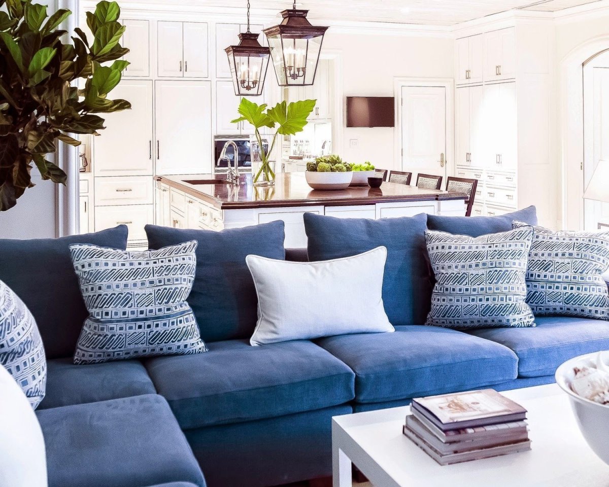 17. Синий диван с цветными подушками