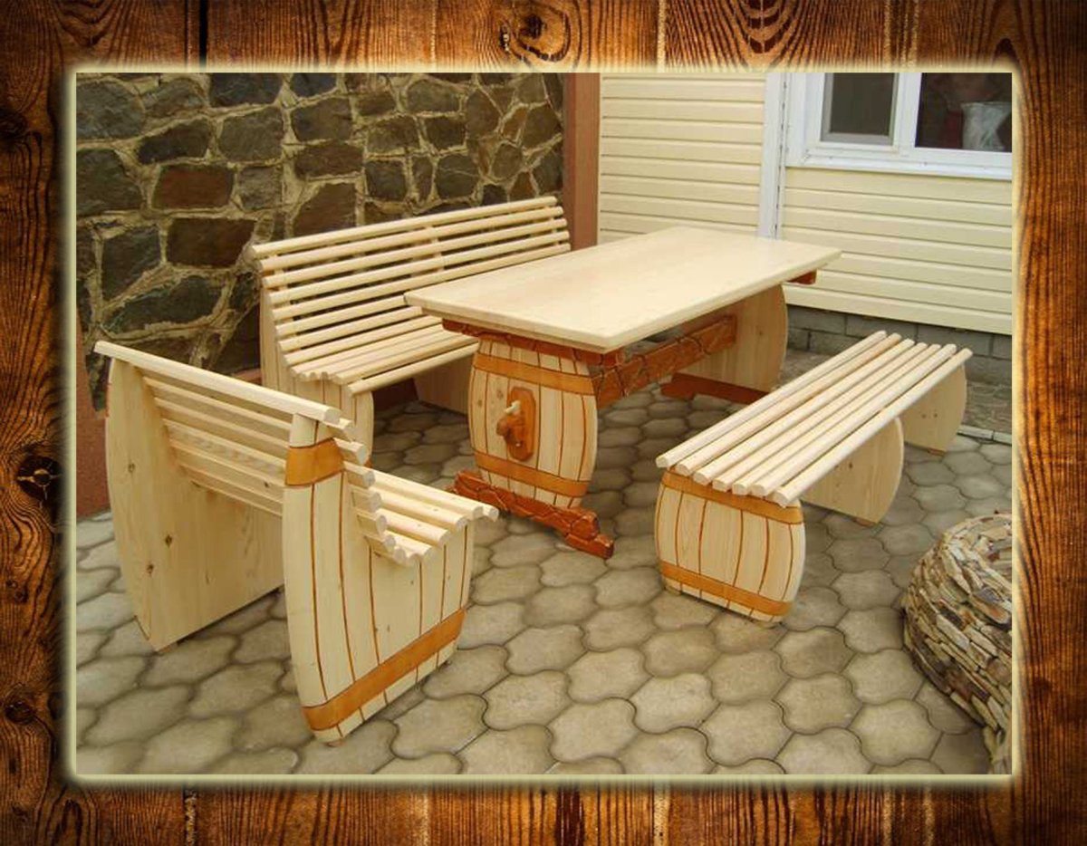 39. Садовая деревянная массивная мебель для дачи