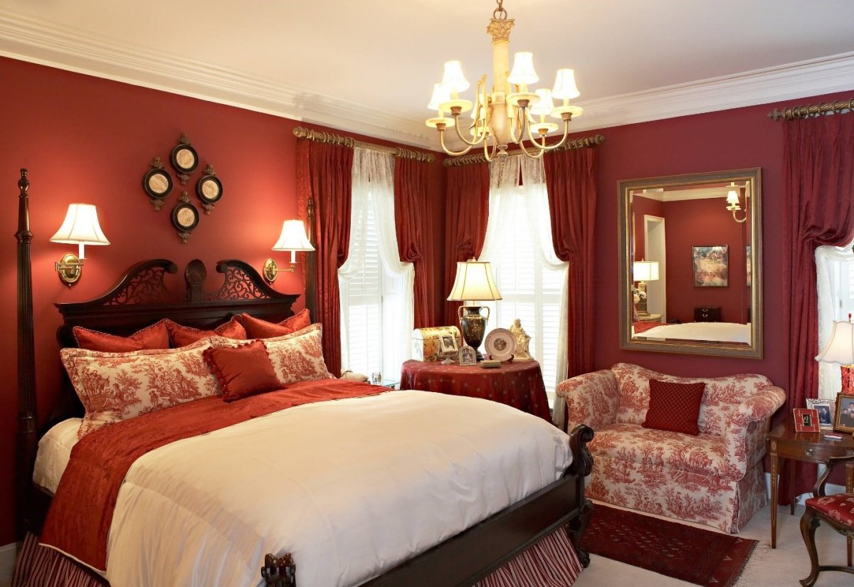 66. Спальня в викторианском стиле бордо