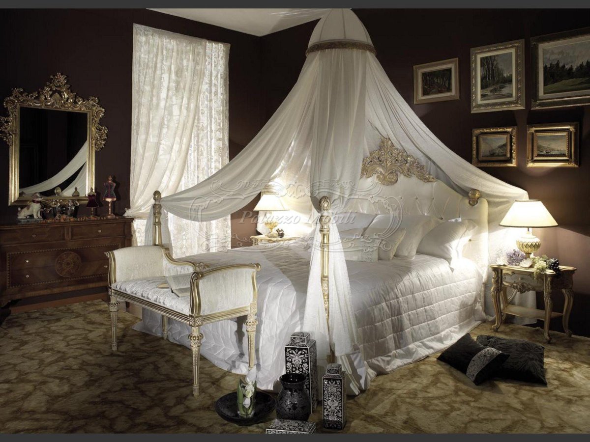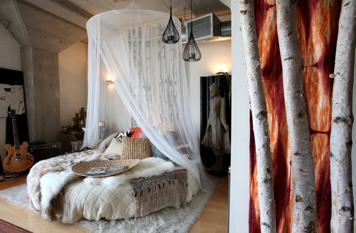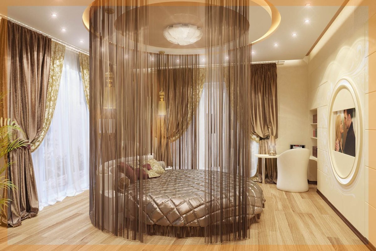 Фото: Круглая кровать двуспальная с балдахином и красным постельным