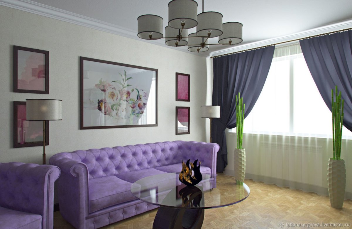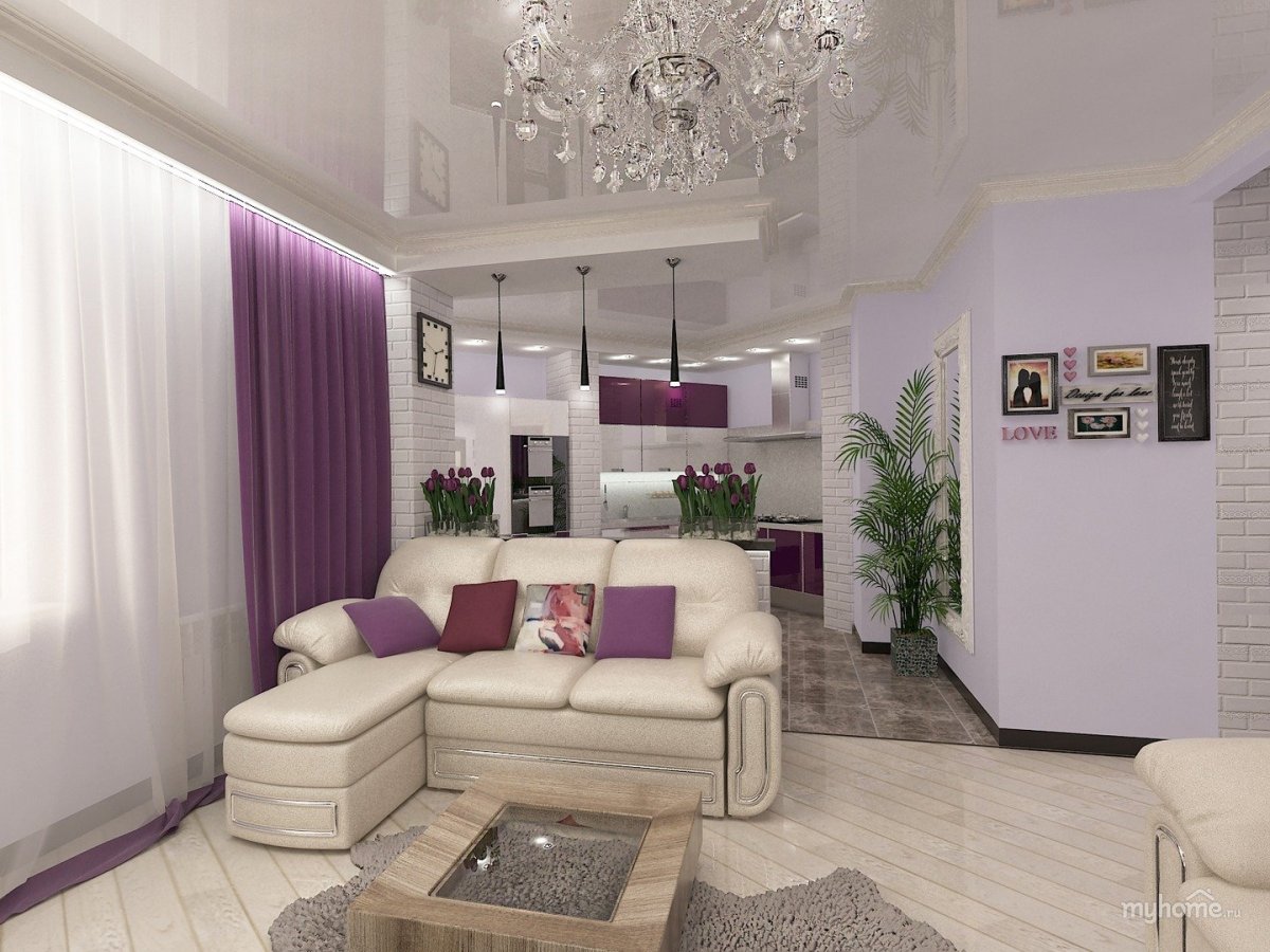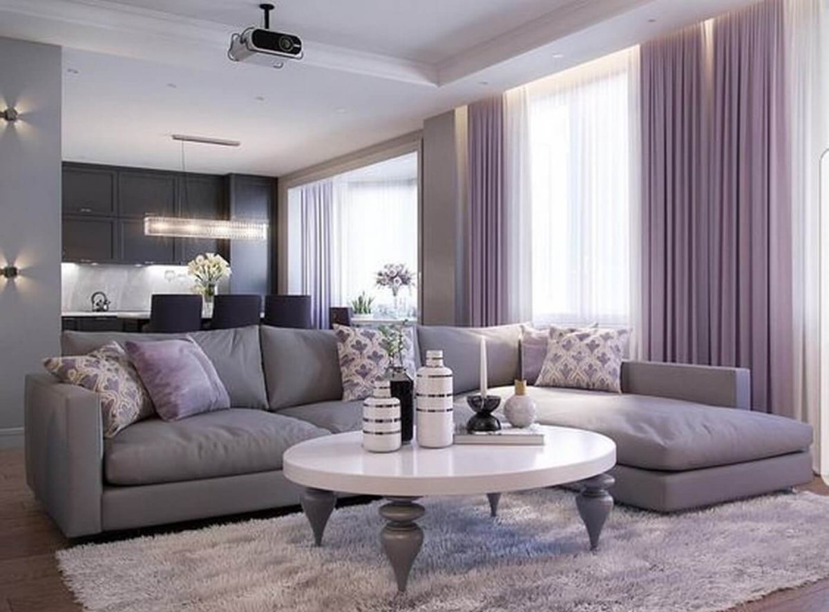 29. Дизайн гостиной 17 метров в сиреневых тонах