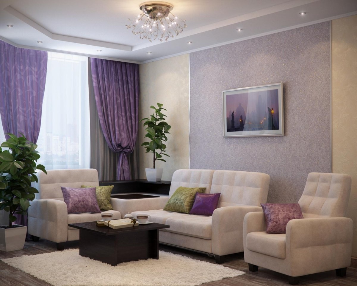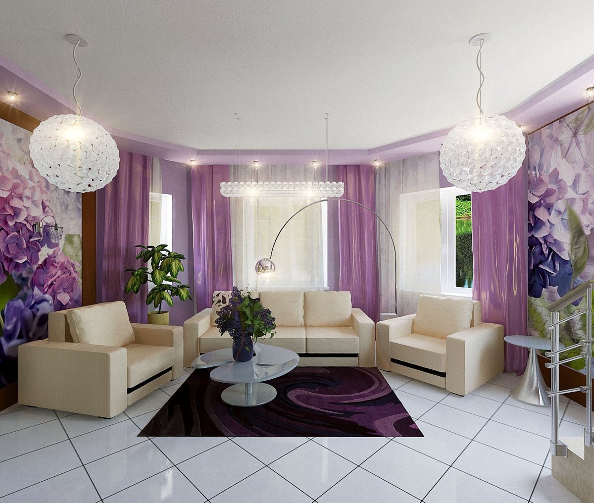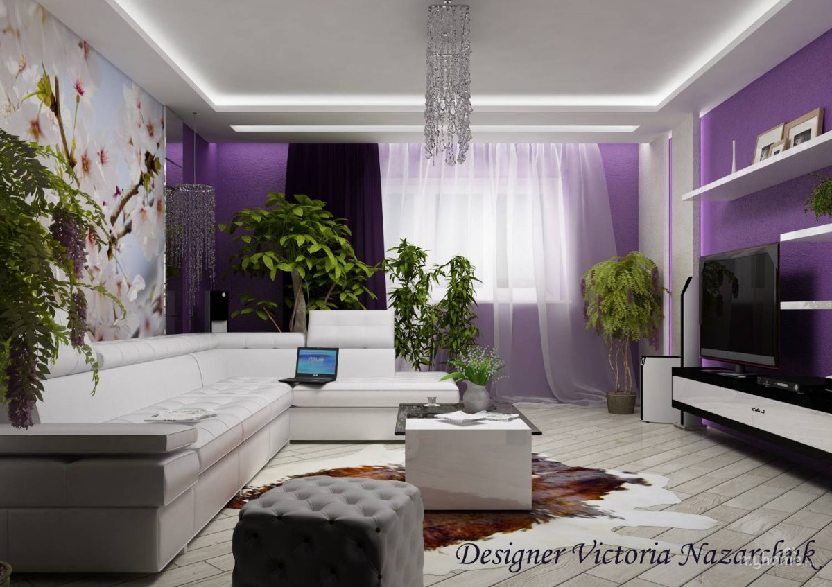 29. Дизайн гостиной 17 метров в сиреневых тонах