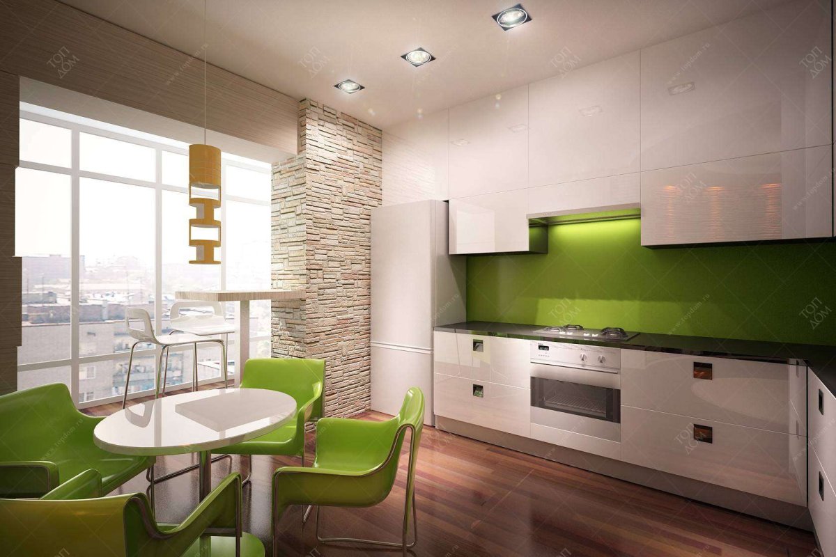 12. Зеленая кухня гостиная