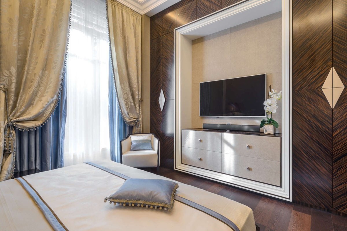 31. Телевизор напротив кровати в спальне