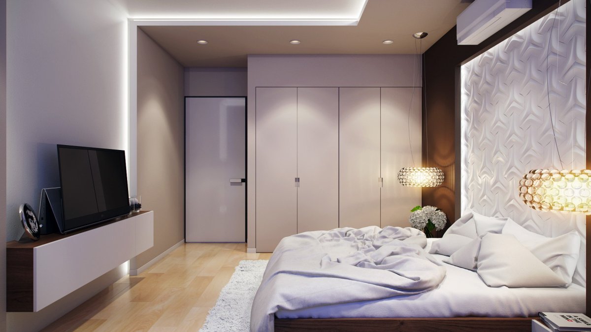 8. Современная спальня с телевизором