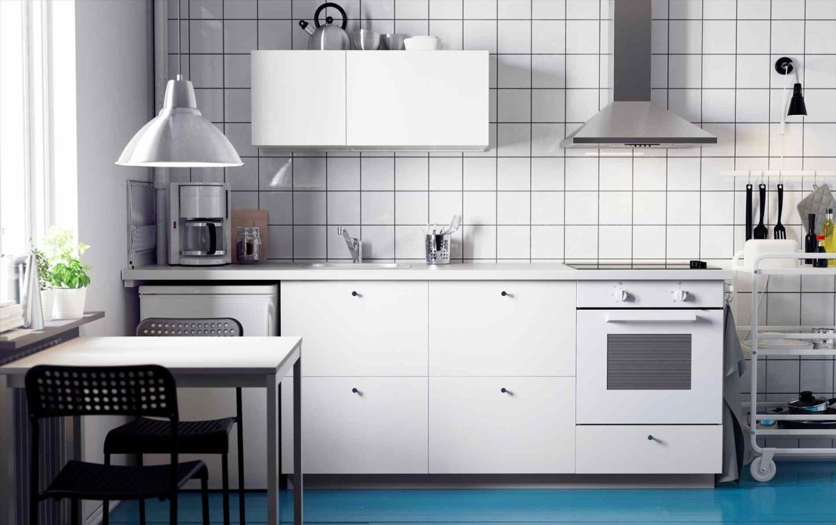 50. Белая кухня икеа белая плитка