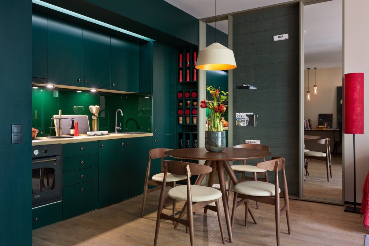 6. Изумрудные обои на кухне