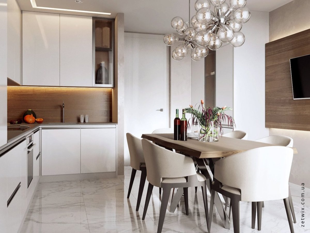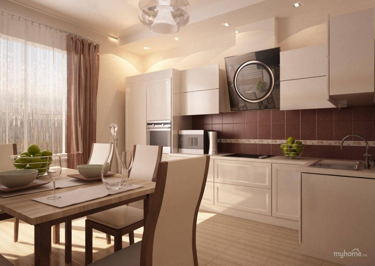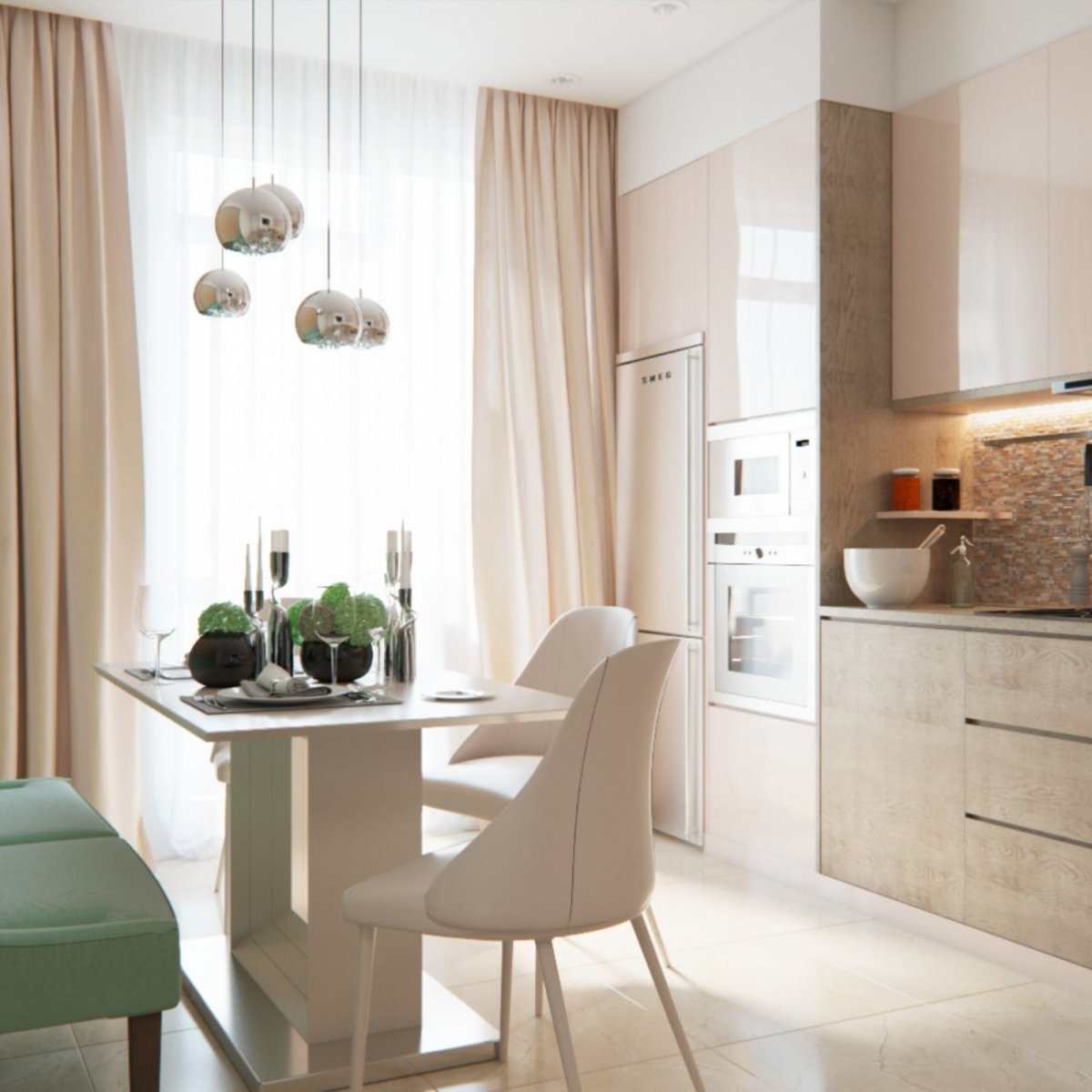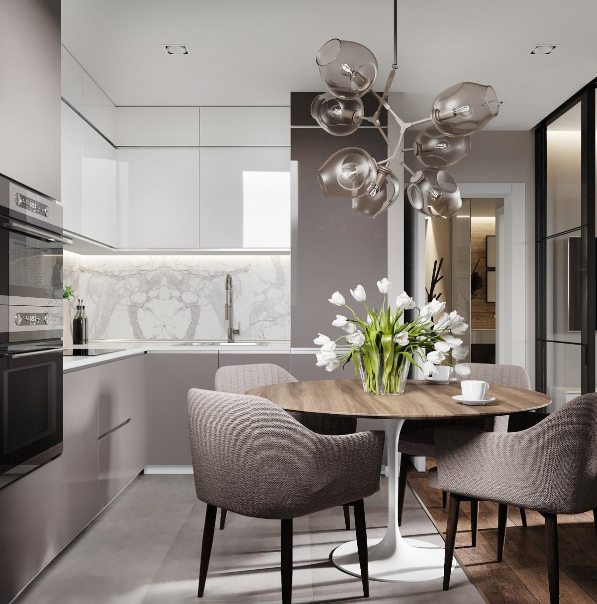20. Кухня в квартире в современном стиле в бежевых тонах