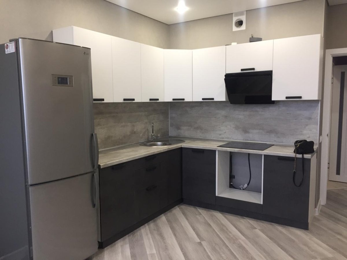 46. Кухня Минимализм графит белый