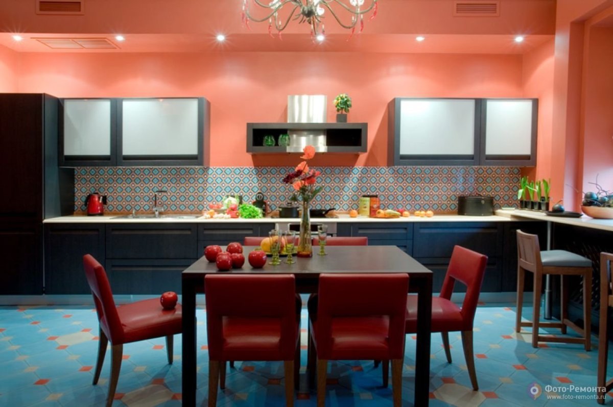 54. Коралловый цвет в интерьере кухни