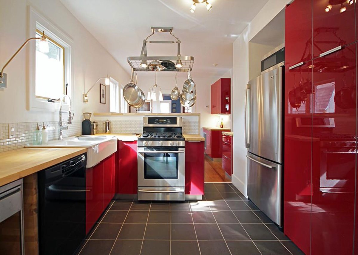 43. Красная кухня в интерьере