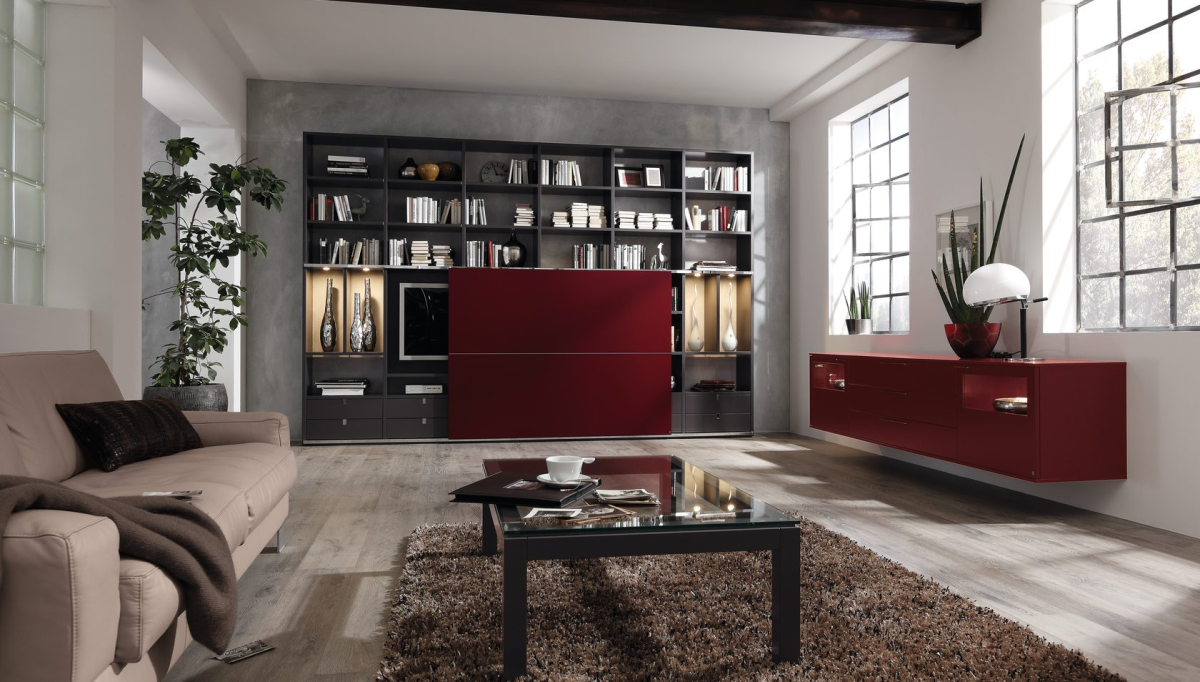 34. Гостиная мебель в современном стиле в бордовых тонах