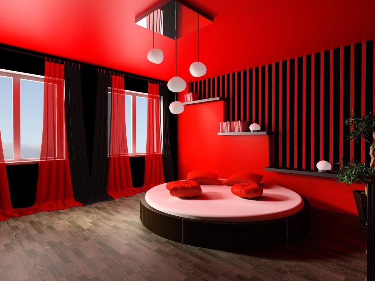56. Черно красный интерьер комнаты
