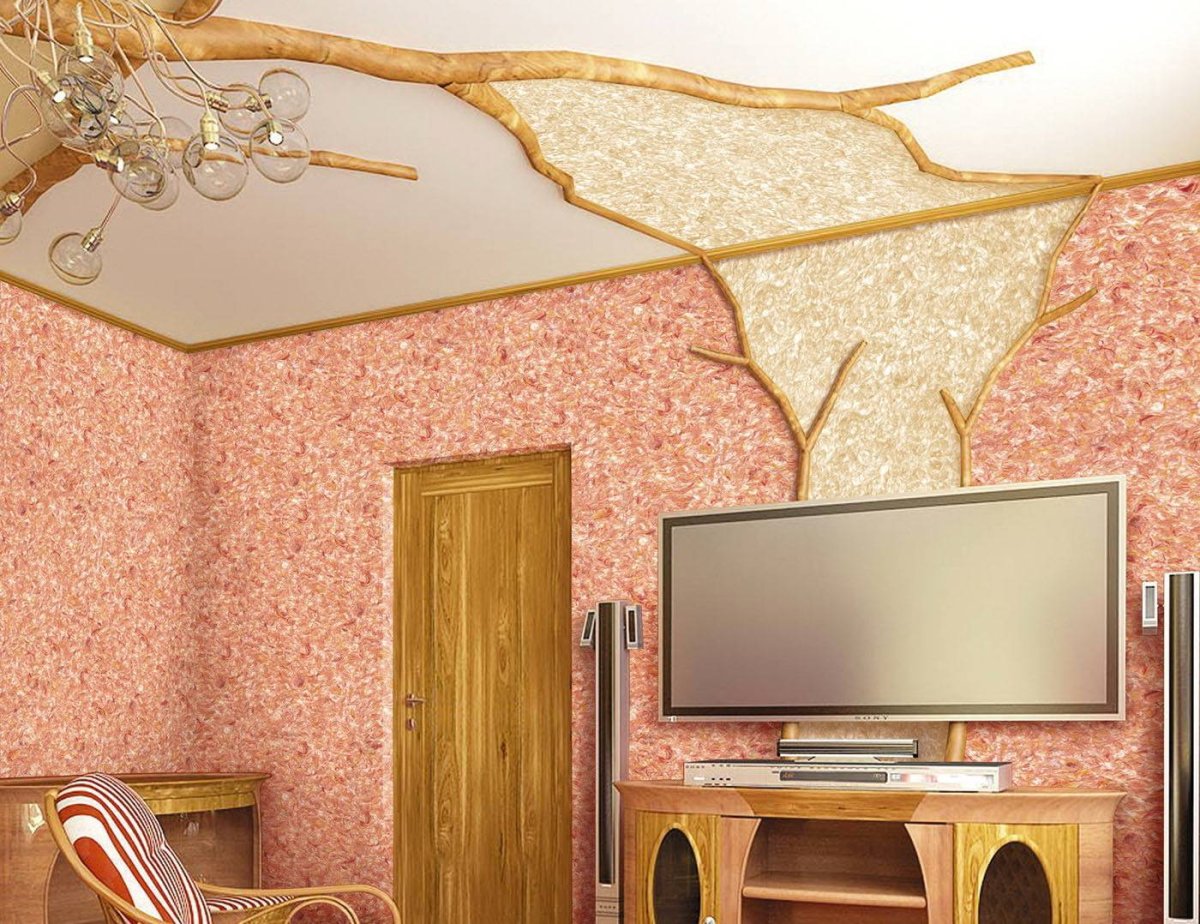 62. Жидкие обои на гипсокартон потолок