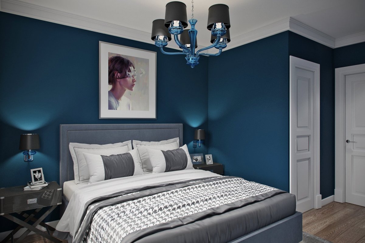 Фото: Красивый интерьер спальни в сине-серебристом цвете