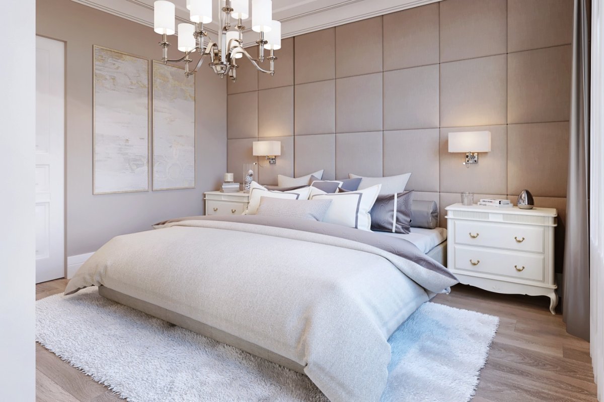 Фото: Дизайнерская спальня в светлых тонах