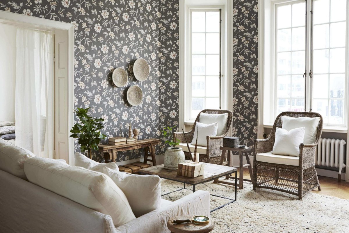 32. Гостиная с обоями в цветочек