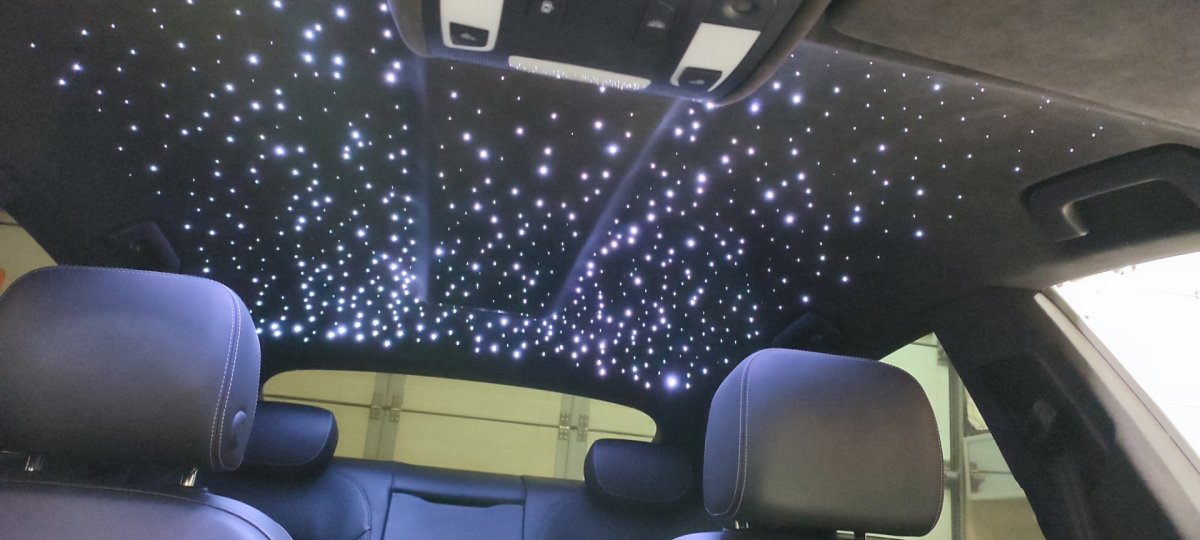 24. Натяжной потолок Звёздное небо с подсветкой в спальне
