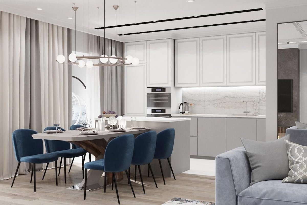 Фото: Кухня гостиная Неоклассика Скандинавия