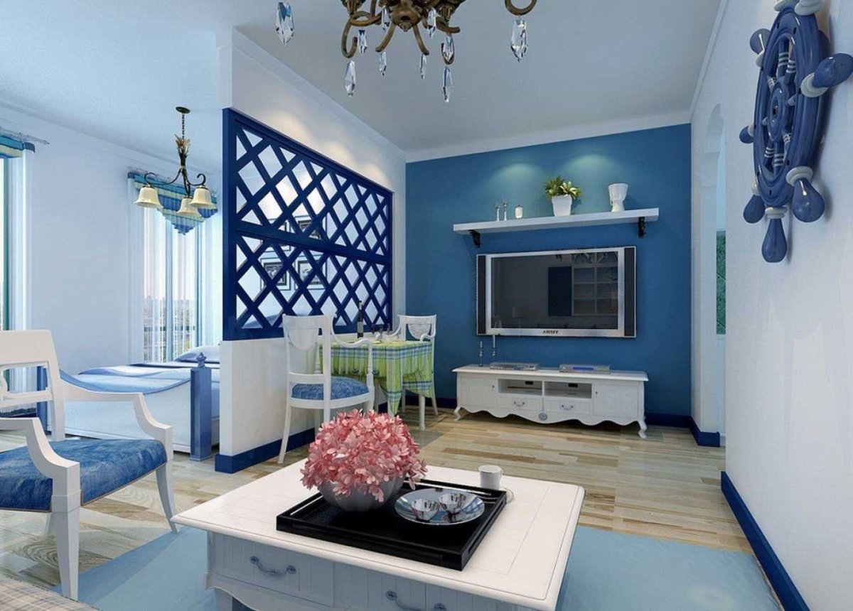16. Гостиная с голубыми стенами