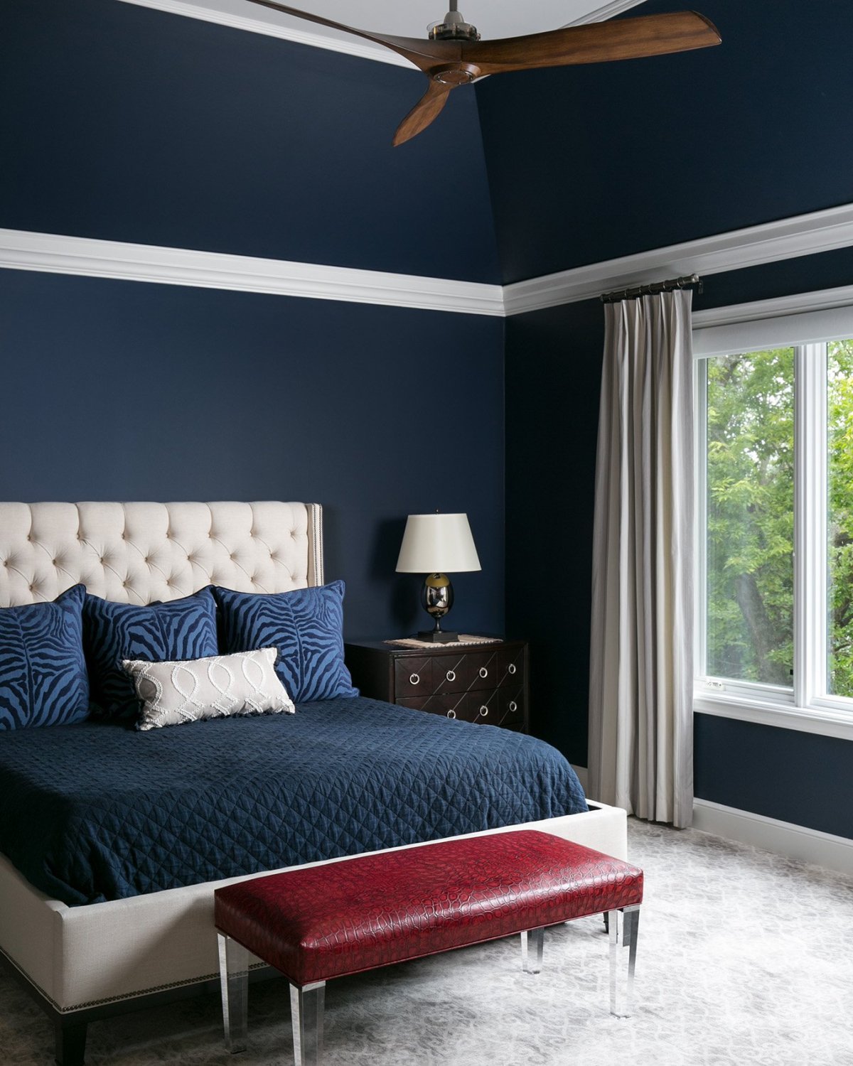 34. Темно синие стены в спальне