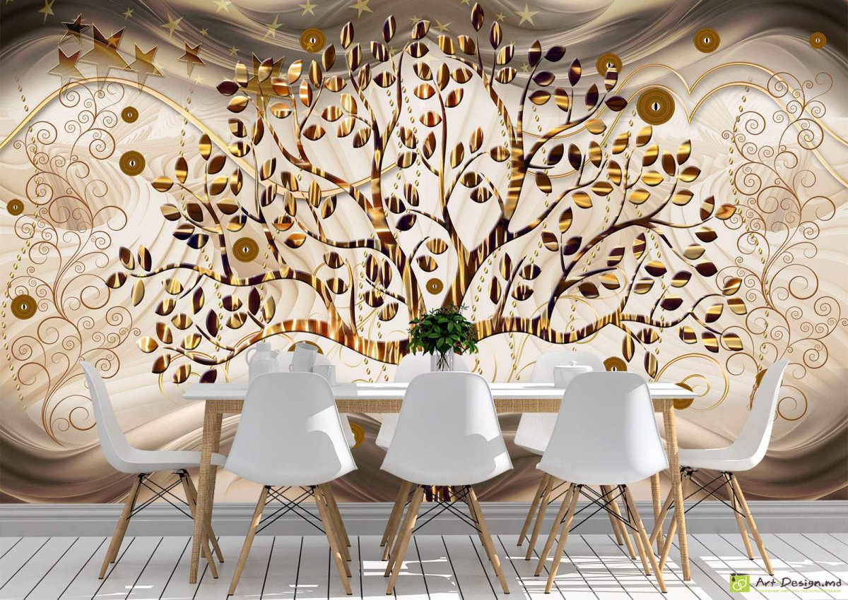 37. Фотообои флизелиновые Design Studio 3d объёмное золотое дерево 3х2.5м