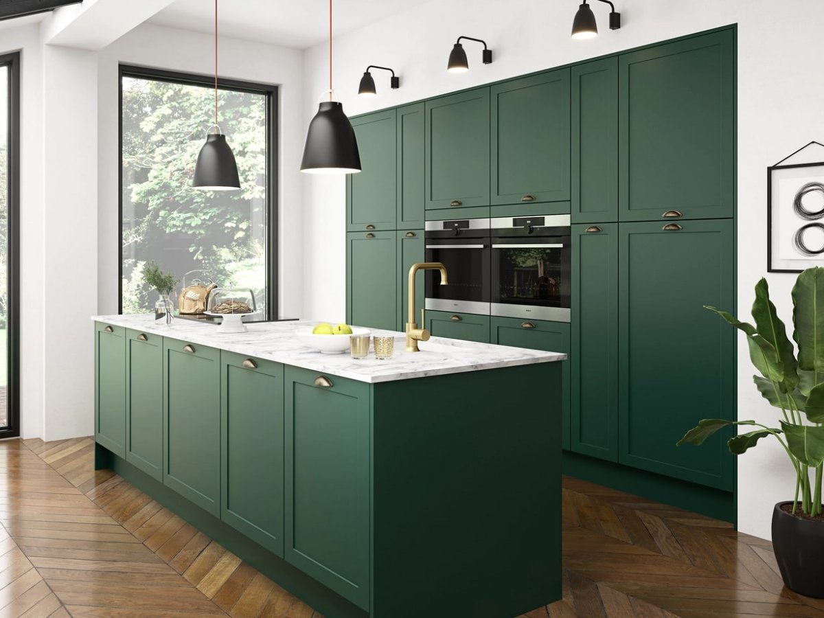 46. Кухня в темно зеленом цвете