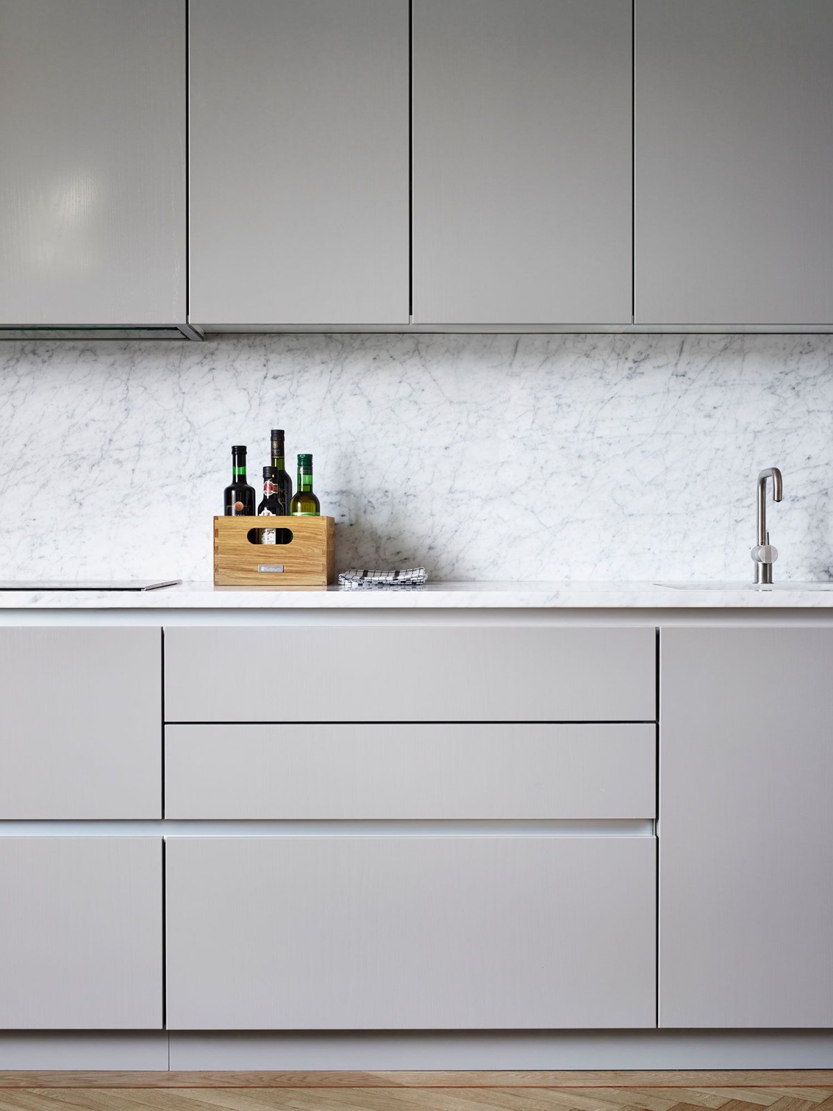 43. Белая кухня с врезными ручками