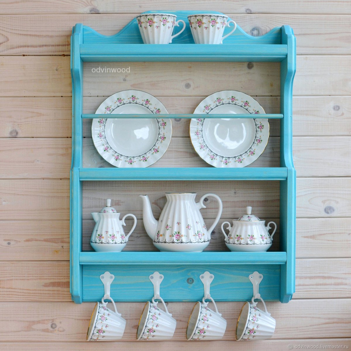 26. Деревянная полка для посуды настенная в стиле Кантри своими руками